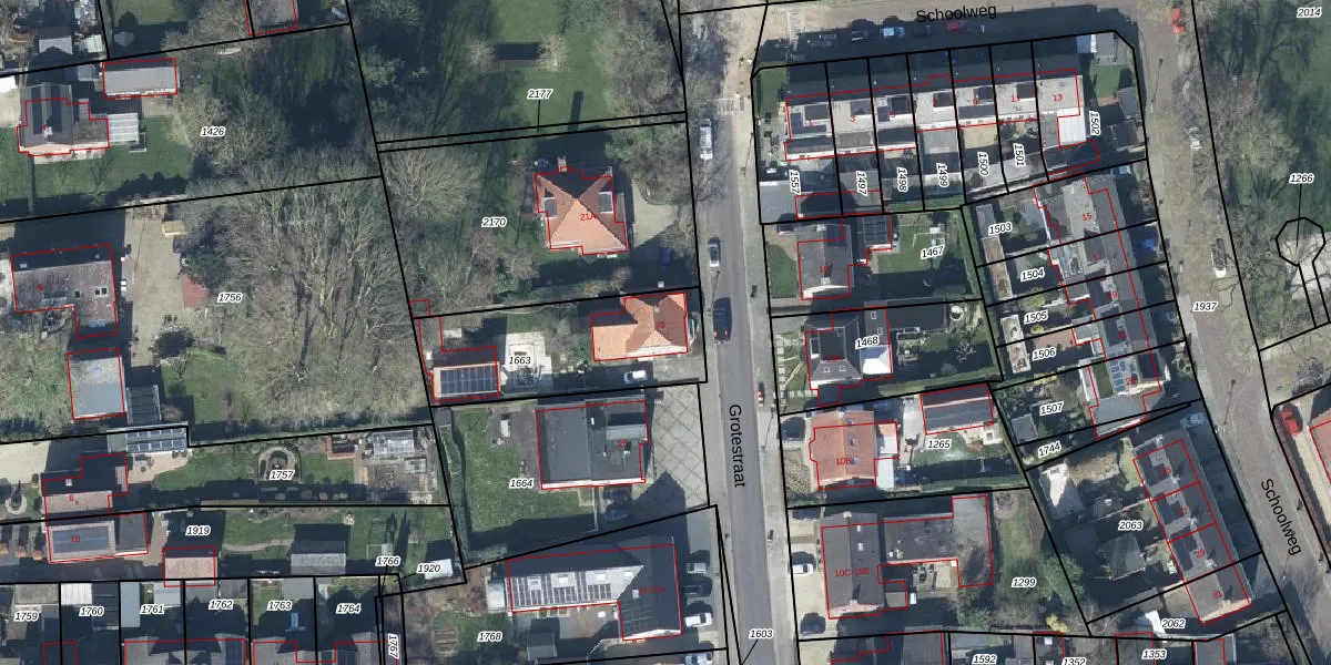 Het perceel waarop Grotestraat 23 staat heeft een oppervlakte van 594 m². Dit is een groot perceel. De perceeloppervlakte wordt geregistreerd door het Kadaster. Gedetailleerde informatie over de maten van dit perceel kunt u vinden in het rapport Kadastrale kaart met maatvoering van Grotestraat 23.