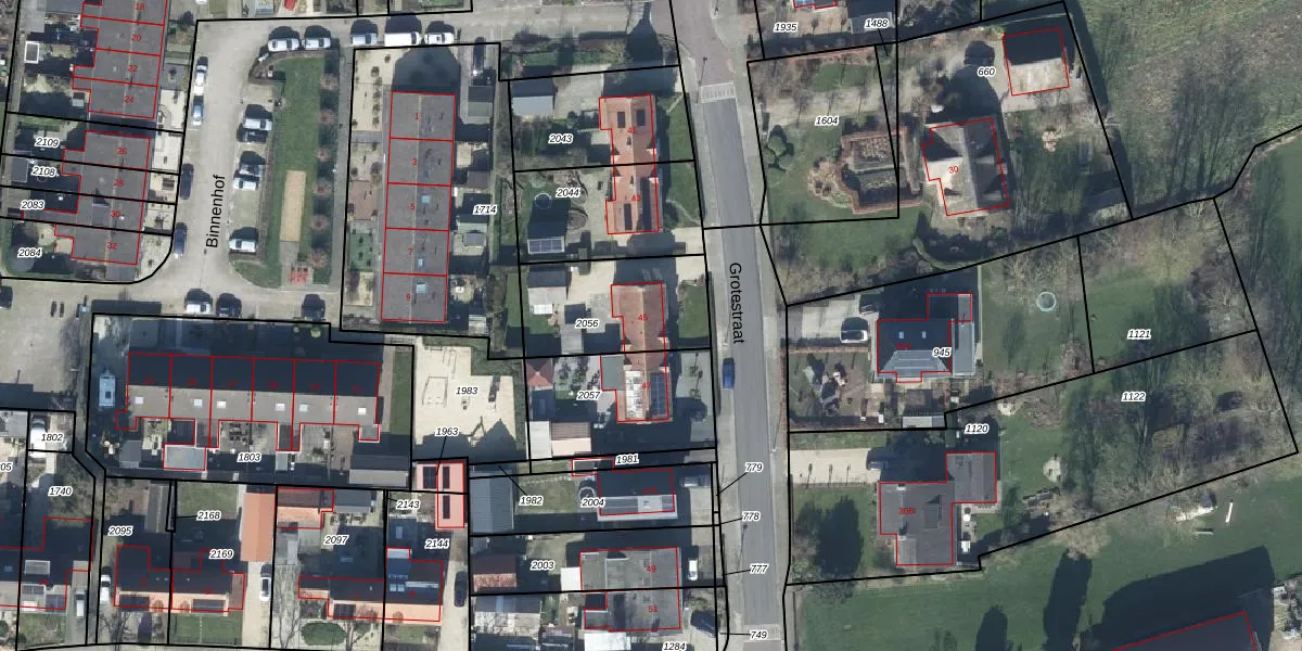 Grotestraat 45 is gelegen op kadastraal perceel AFD00B2056. Deze kadastrale aanduiding is uniek en wordt gebruikt door het Kadaster om eigendomsrechten en andere zakelijke rechten vast te leggen. Het perceel maakt onderdeel uit van de kadastrale gemeente Afferden.