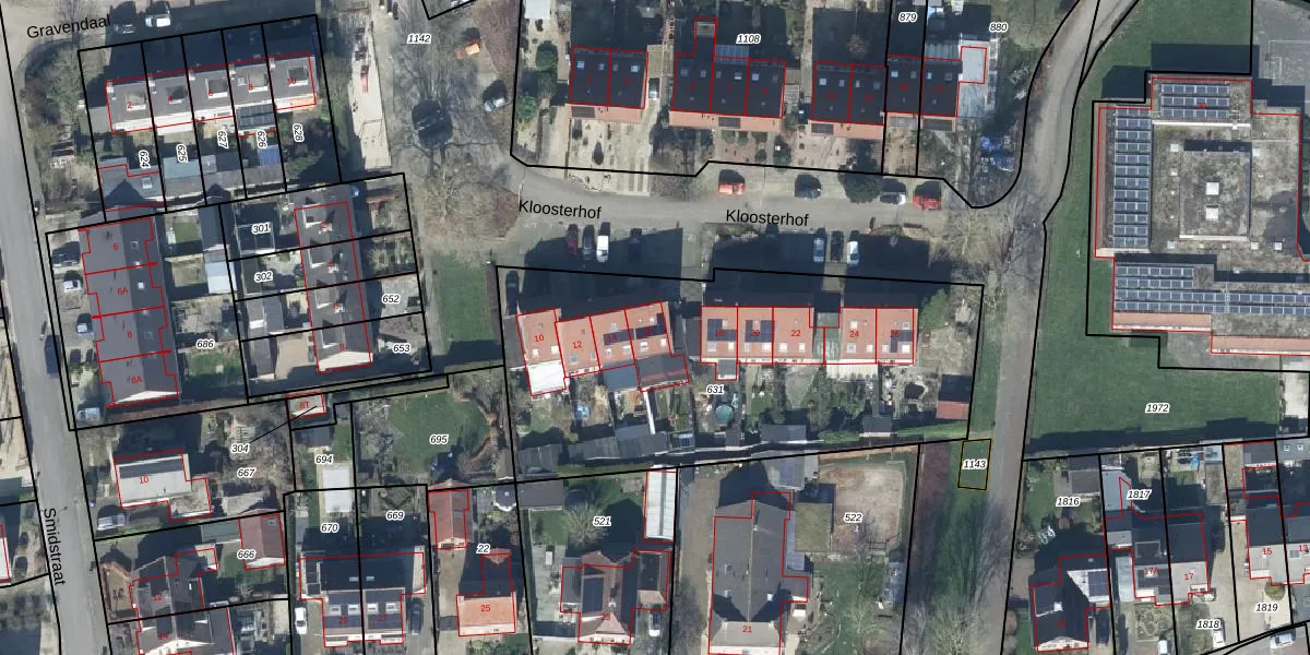 Kloosterhof 16 is gelegen op kadastraal perceel DTN03E631. Deze kadastrale aanduiding is uniek en wordt gebruikt door het Kadaster om eigendomsrechten en andere zakelijke rechten vast te leggen. Het perceel maakt onderdeel uit van de kadastrale gemeente Druten.