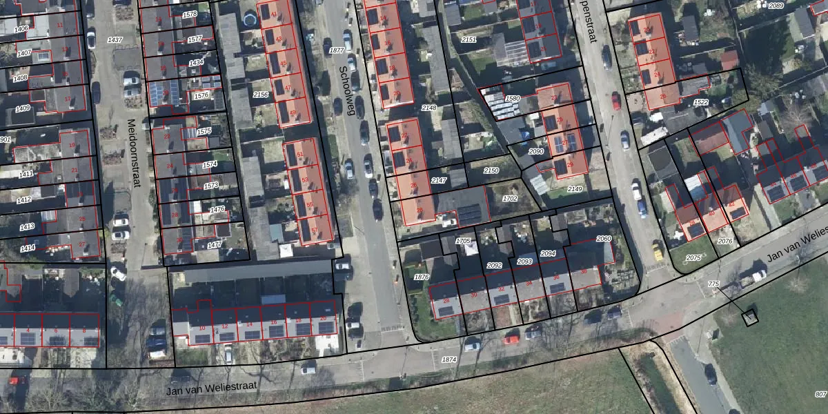 Gebruik de zoekbalk of klik op een perceel voor informatie over de adressen binnen dit perceel.