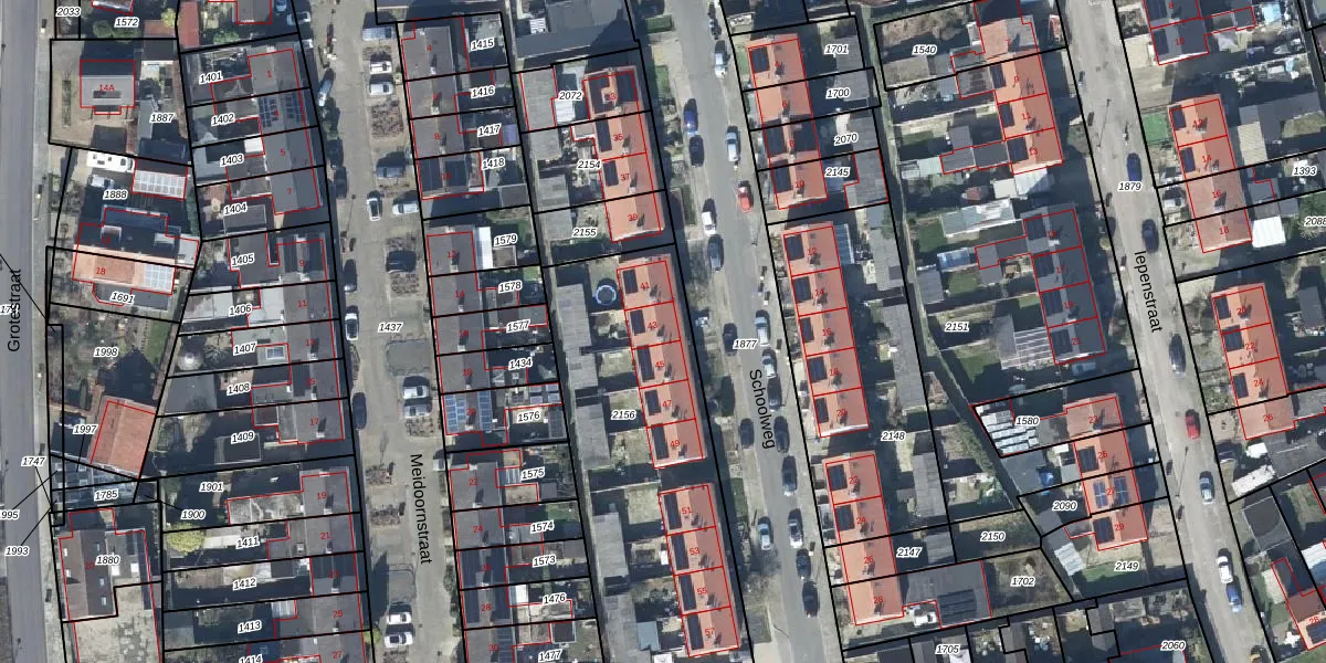 Het perceel waarop Schoolweg 43 staat heeft een oppervlakte van 2376 m². Dit is een zeer groot perceel. De perceeloppervlakte wordt geregistreerd door het Kadaster. Gedetailleerde informatie over de maten van dit perceel kunt u vinden in het rapport Kadastrale kaart met maatvoering van Schoolweg 43.