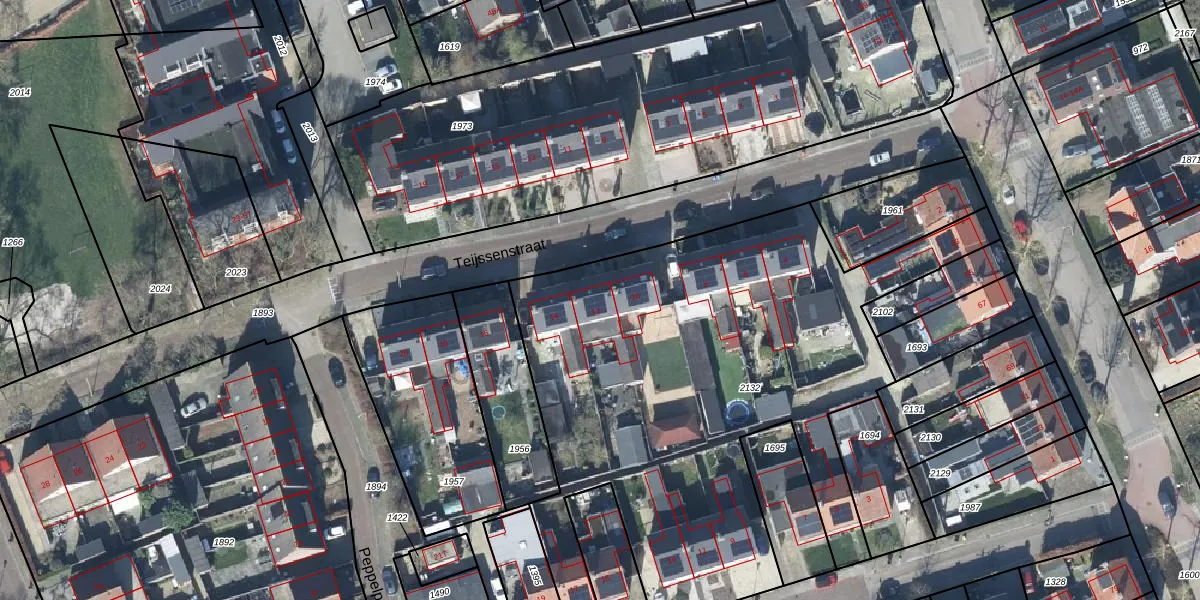 Het perceel waarop Teijssenstraat 12 staat heeft een oppervlakte van 3006 m². Dit is een zeer groot perceel. De perceeloppervlakte wordt geregistreerd door het Kadaster. Gedetailleerde informatie over de maten van dit perceel kunt u vinden in het rapport Kadastrale kaart met maatvoering van Teijssenstraat 12.