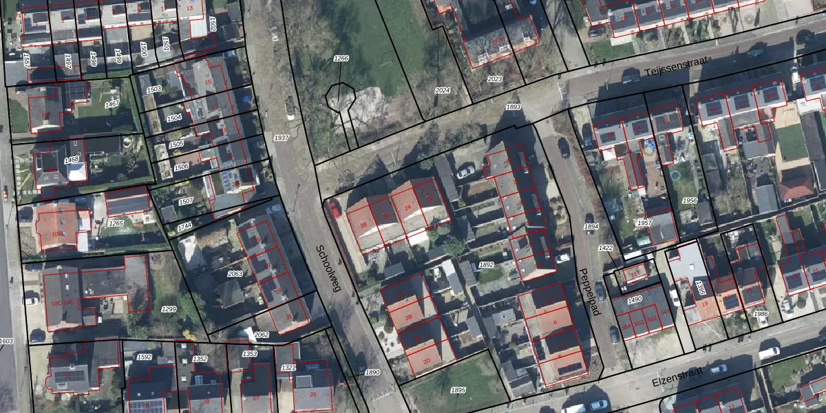 Het perceel waarop Teijssenstraat 24 staat heeft een oppervlakte van 2935 m². Dit is een zeer groot perceel. De perceeloppervlakte wordt geregistreerd door het Kadaster. Gedetailleerde informatie over de maten van dit perceel kunt u vinden in het rapport Kadastrale kaart met maatvoering van Teijssenstraat 24.