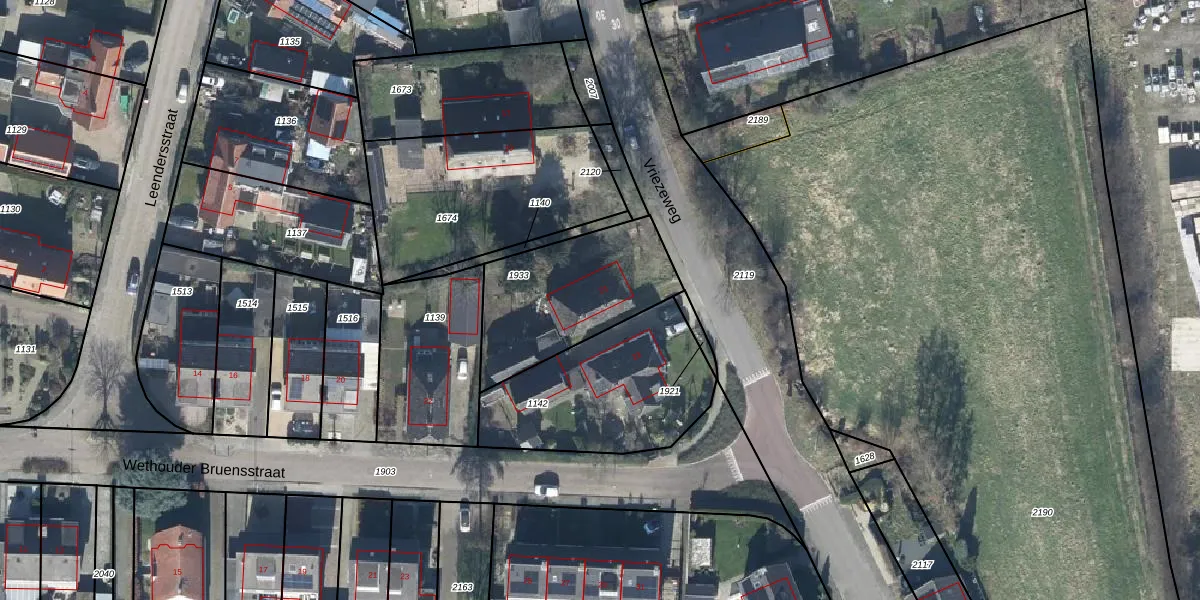 Het perceel waarop Vriezeweg 21 staat heeft een oppervlakte van 555 m². Dit is een groot perceel. De perceeloppervlakte wordt geregistreerd door het Kadaster. Gedetailleerde informatie over de maten van dit perceel kunt u vinden in het rapport Kadastrale kaart met maatvoering van Vriezeweg 21.