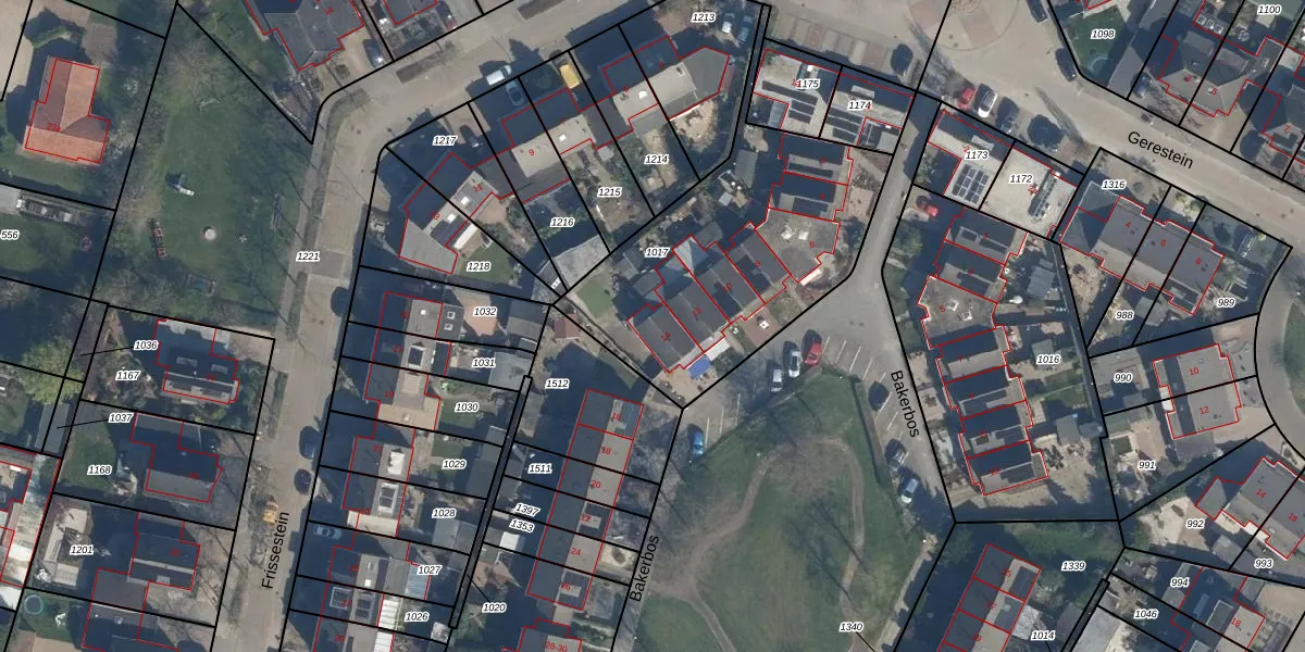 Het perceel waarop Bakerbos 14 staat heeft een oppervlakte van 1203 m². Dit is een zeer groot perceel. De perceeloppervlakte wordt geregistreerd door het Kadaster. Gedetailleerde informatie over de maten van dit perceel kunt u vinden in het rapport Kadastrale kaart met maatvoering van Bakerbos 14.