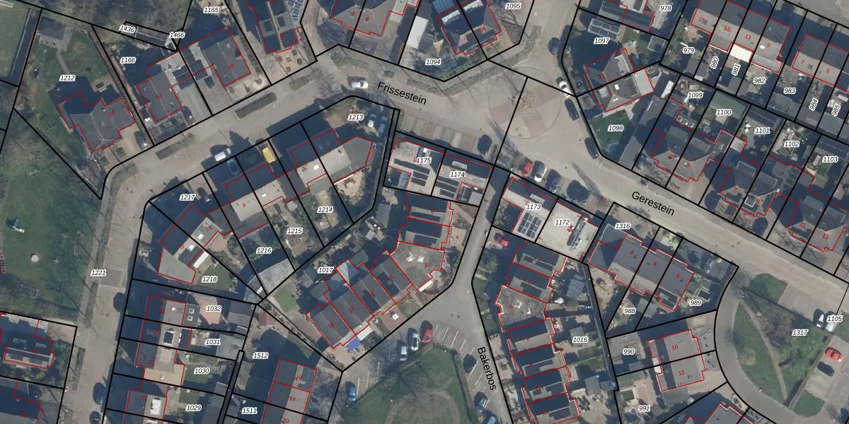 Het perceel waarop Bakerbos 2 staat heeft een oppervlakte van 1203 m². Dit is een zeer groot perceel. De perceeloppervlakte wordt geregistreerd door het Kadaster. Gedetailleerde informatie over de maten van dit perceel kunt u vinden in het rapport Kadastrale kaart met maatvoering van Bakerbos 2.