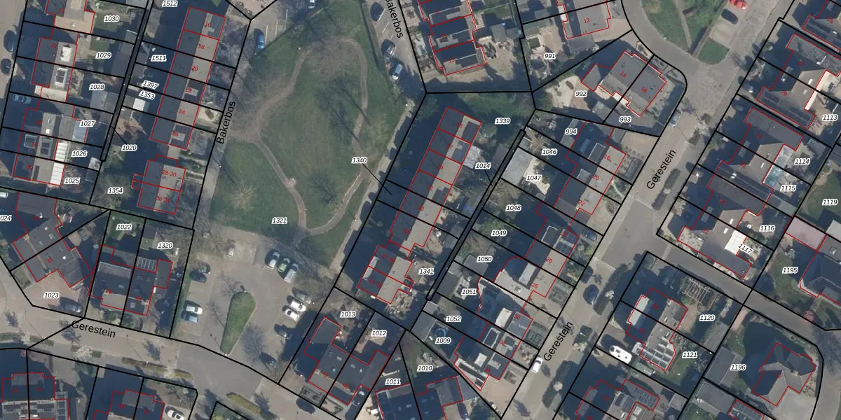 Gebruik de zoekbalk of klik op een perceel voor informatie over de adressen binnen dit perceel.