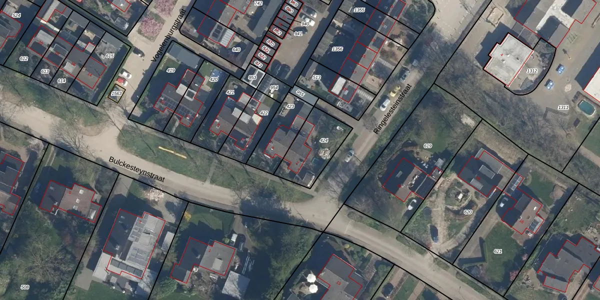Gebruik de zoekbalk of klik op een perceel voor informatie over de adressen binnen dit perceel.