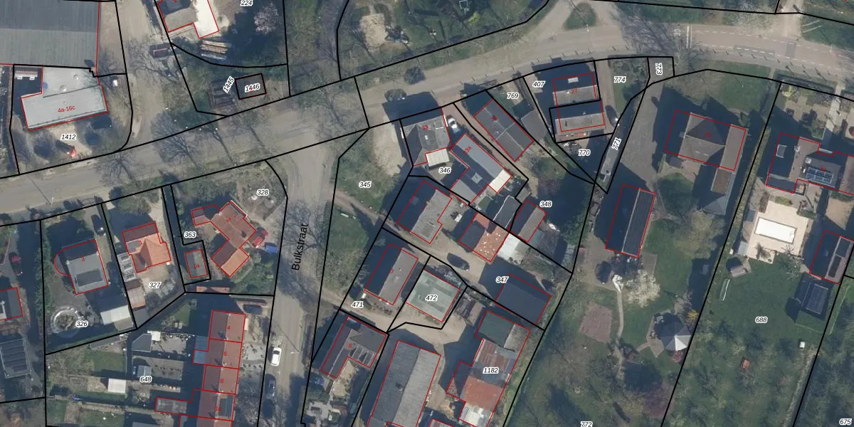 Bulkstraat 1 is gelegen op kadastraal perceel DEI00L347. Deze kadastrale aanduiding is uniek en wordt gebruikt door het Kadaster om eigendomsrechten en andere zakelijke rechten vast te leggen. Het perceel maakt onderdeel uit van de kadastrale gemeente Deil.