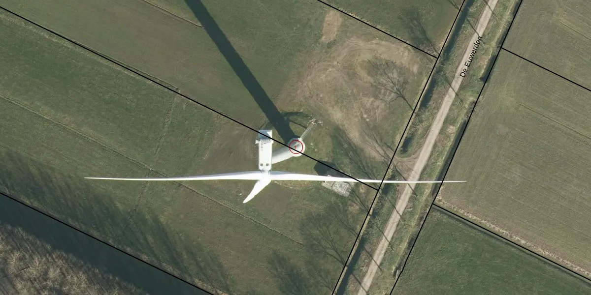 Het perceel waarop De Euwerden 3 staat heeft een oppervlakte van 2,2 ha. Dit is een zeer groot perceel. De perceeloppervlakte wordt geregistreerd door het Kadaster. Gedetailleerde informatie over de maten van dit perceel kunt u vinden in het rapport Kadastrale kaart met maatvoering van De Euwerden 3.