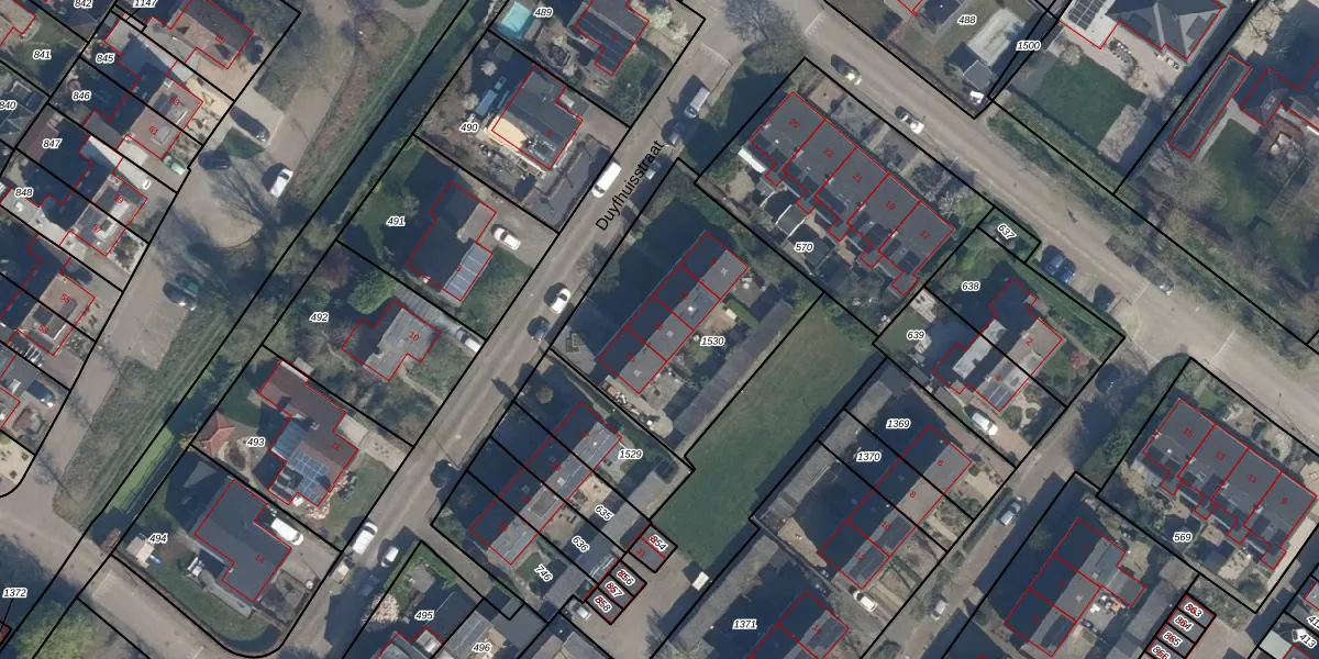 Het perceel waarop Duyfhuisstraat 13 staat heeft een oppervlakte van 952 m². Dit is een groot perceel. De perceeloppervlakte wordt geregistreerd door het Kadaster. Gedetailleerde informatie over de maten van dit perceel kunt u vinden in het rapport Kadastrale kaart met maatvoering van Duyfhuisstraat 13.