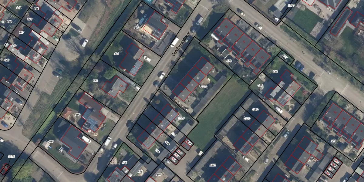 Het perceel waarop Duyfhuisstraat 15 staat heeft een oppervlakte van 952 m². Dit is een groot perceel. De perceeloppervlakte wordt geregistreerd door het Kadaster. Gedetailleerde informatie over de maten van dit perceel kunt u vinden in het rapport Kadastrale kaart met maatvoering van Duyfhuisstraat 15.