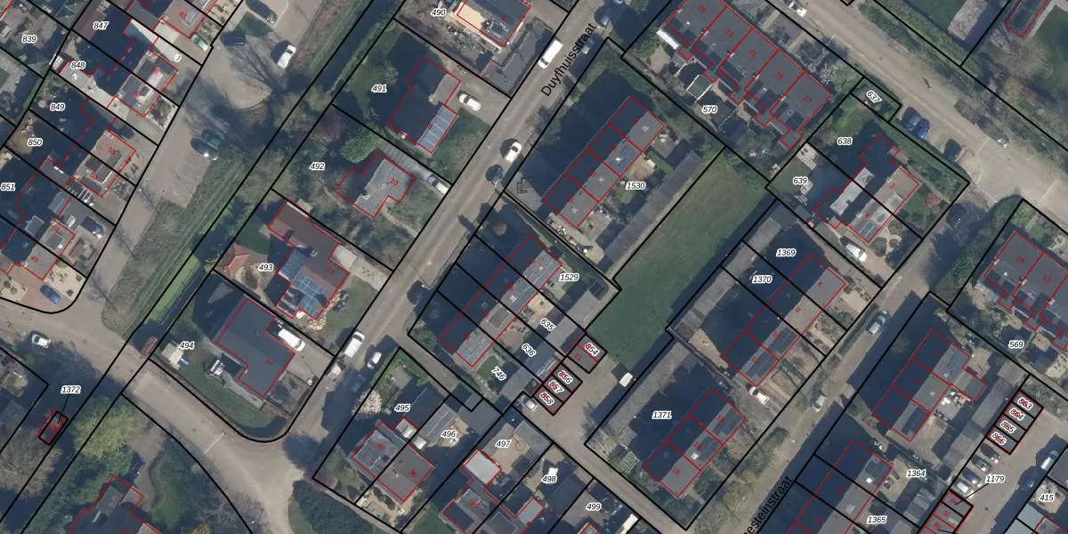 Duyfhuisstraat 17 is gelegen op kadastraal perceel DEI00L1529. Deze kadastrale aanduiding is uniek en wordt gebruikt door het Kadaster om eigendomsrechten en andere zakelijke rechten vast te leggen. Het perceel maakt onderdeel uit van de kadastrale gemeente Deil.