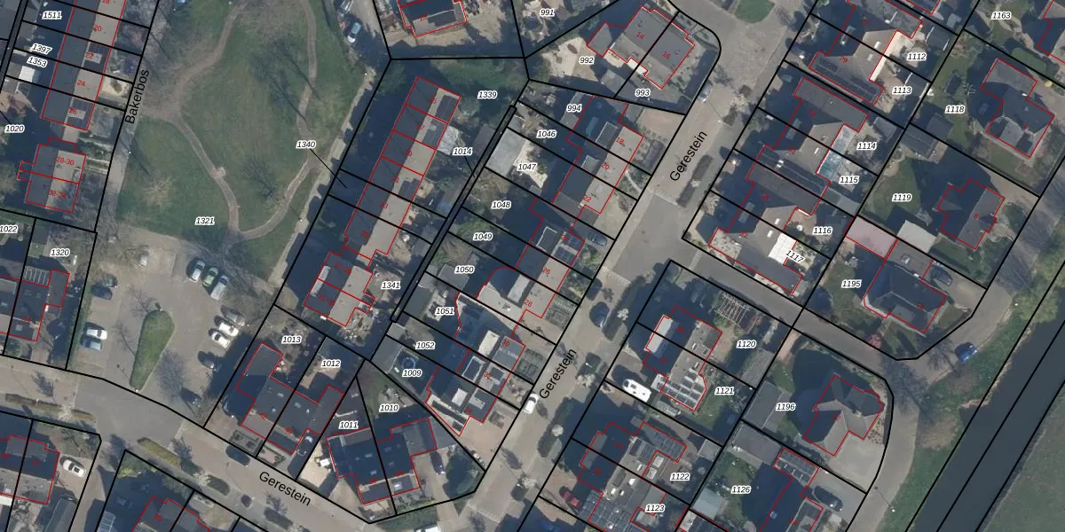 Gebruik de zoekbalk of klik op een perceel voor informatie over de adressen binnen dit perceel.
