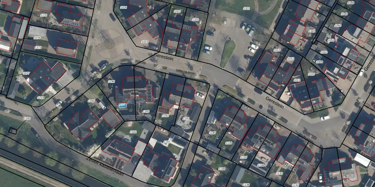 Het perceel waarop Gerestein 67 staat heeft een oppervlakte van 375 m². Dit is een groot perceel. De perceeloppervlakte wordt geregistreerd door het Kadaster. Gedetailleerde informatie over de maten van dit perceel kunt u vinden in het rapport Kadastrale kaart met maatvoering van Gerestein 67.