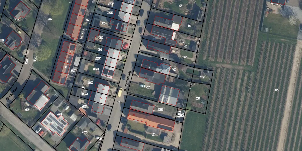 Het perceel waarop Krugerstraat 13 staat heeft een oppervlakte van 748 m². Dit is een groot perceel. De perceeloppervlakte wordt geregistreerd door het Kadaster. Gedetailleerde informatie over de maten van dit perceel kunt u vinden in het rapport Kadastrale kaart met maatvoering van Krugerstraat 13.