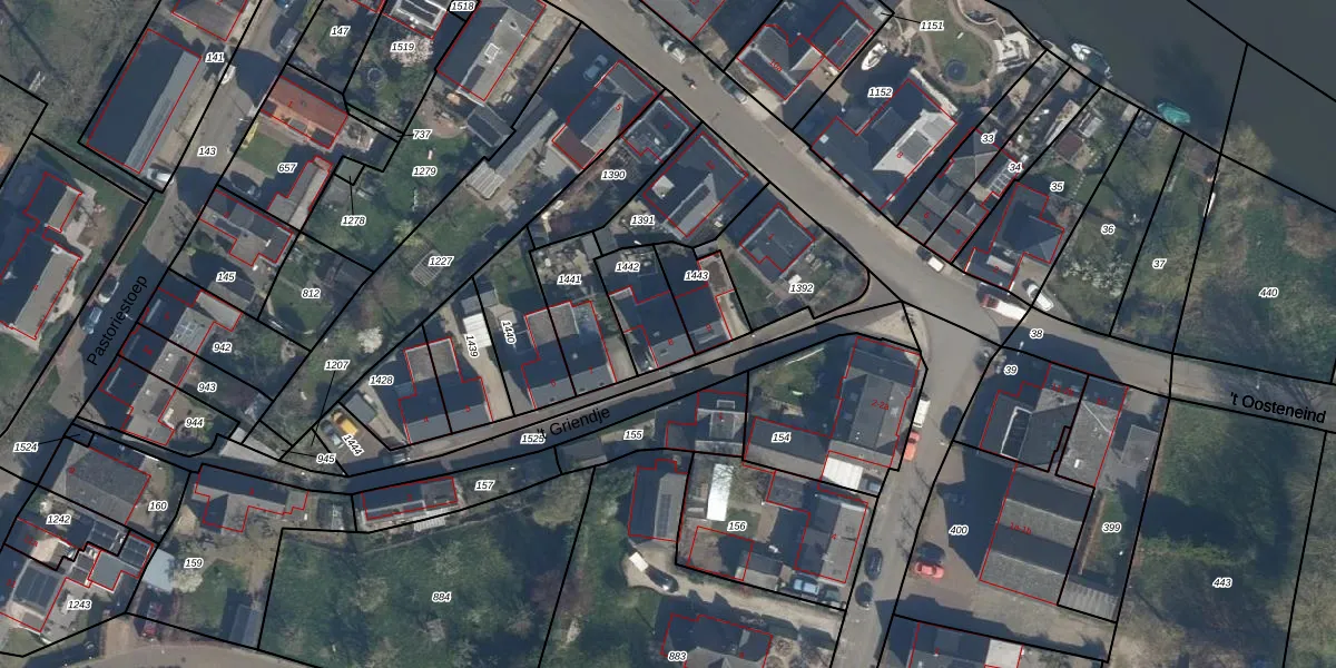 't Griendje 8 is gelegen op kadastraal perceel DEI00L1442. Deze kadastrale aanduiding is uniek en wordt gebruikt door het Kadaster om eigendomsrechten en andere zakelijke rechten vast te leggen. Het perceel maakt onderdeel uit van de kadastrale gemeente Deil.