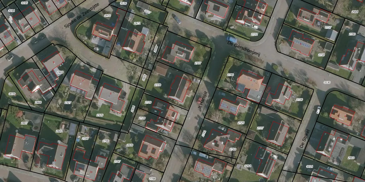 Gebruik de zoekbalk of klik op een perceel voor informatie over de adressen binnen dit perceel.
