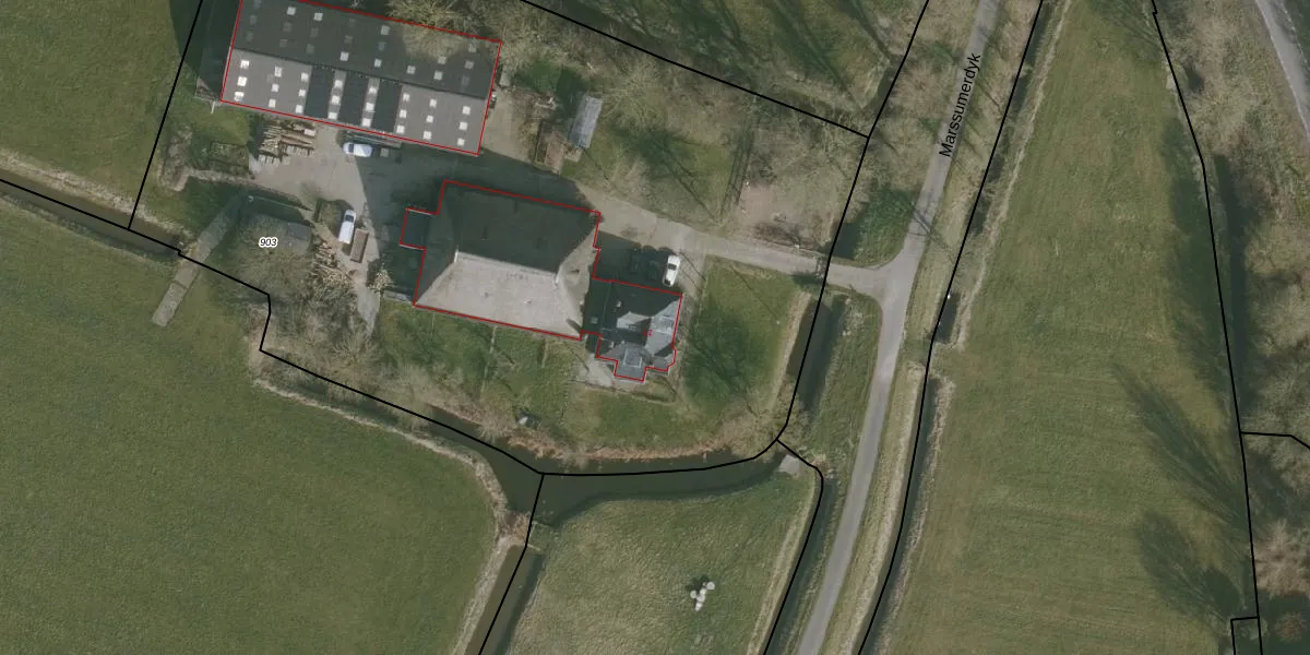 Het perceel waarop Marssumerdyk 11 staat heeft een oppervlakte van 6320 m². Dit is een zeer groot perceel. De perceeloppervlakte wordt geregistreerd door het Kadaster. Gedetailleerde informatie over de maten van dit perceel kunt u vinden in het rapport Kadastrale kaart met maatvoering van Marssumerdyk 11.