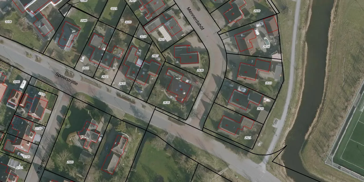 Het perceel waarop Mennerdahôf 28 staat heeft een oppervlakte van 594 m². Dit is een groot perceel. De perceeloppervlakte wordt geregistreerd door het Kadaster. Gedetailleerde informatie over de maten van dit perceel kunt u vinden in het rapport Kadastrale kaart met maatvoering van Mennerdahôf 28.