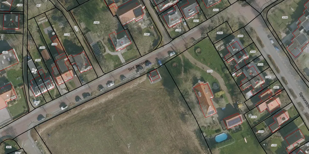 Het perceel waarop Sint Janswei 1-A staat heeft een oppervlakte van 9000 m². Dit is een zeer groot perceel. De perceeloppervlakte wordt geregistreerd door het Kadaster. Gedetailleerde informatie over de maten van dit perceel kunt u vinden in het rapport Kadastrale kaart met maatvoering van Sint Janswei 1-A.