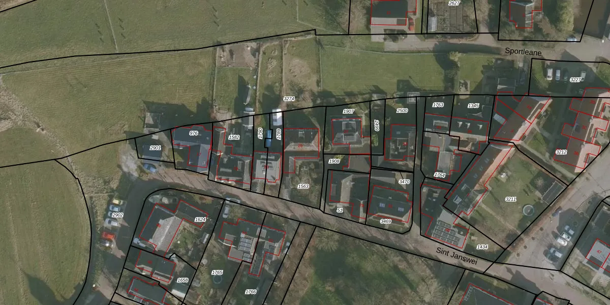 Het perceel waarop Sint Janswei 25 staat heeft een oppervlakte van 428 m². Dit is een groot perceel. De perceeloppervlakte wordt geregistreerd door het Kadaster. Gedetailleerde informatie over de maten van dit perceel kunt u vinden in het rapport Kadastrale kaart met maatvoering van Sint Janswei 25.