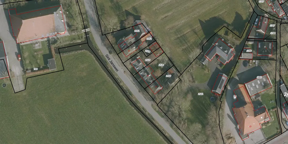 Het perceel waarop Sint Janswei 28 staat heeft een oppervlakte van 315 m². Dit is een groot perceel. De perceeloppervlakte wordt geregistreerd door het Kadaster. Gedetailleerde informatie over de maten van dit perceel kunt u vinden in het rapport Kadastrale kaart met maatvoering van Sint Janswei 28.