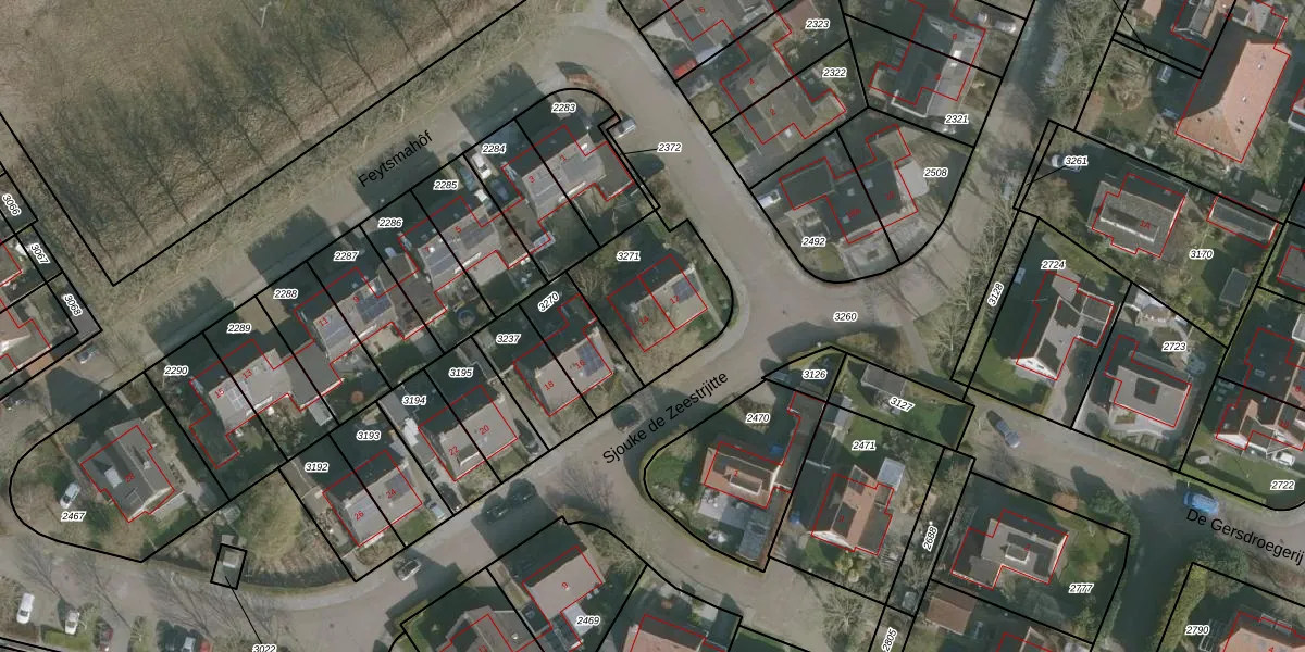 Het perceel waarop Sjouke de Zeestrjitte 14 staat heeft een oppervlakte van 401 m². Dit is een groot perceel. De perceeloppervlakte wordt geregistreerd door het Kadaster. Gedetailleerde informatie over de maten van dit perceel kunt u vinden in het rapport Kadastrale kaart met maatvoering van Sjouke de Zeestrjitte 14.