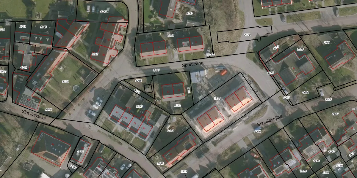 Het perceel waarop Sportleane 12 staat heeft een oppervlakte van 449 m². Dit is een groot perceel. De perceeloppervlakte wordt geregistreerd door het Kadaster. Gedetailleerde informatie over de maten van dit perceel kunt u vinden in het rapport Kadastrale kaart met maatvoering van Sportleane 12.