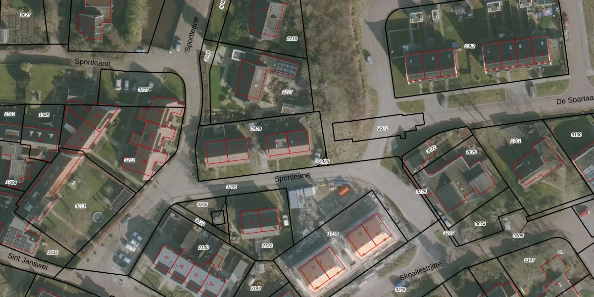 Het perceel waarop Sportleane 8 staat heeft een oppervlakte van 780 m². Dit is een groot perceel. De perceeloppervlakte wordt geregistreerd door het Kadaster. Gedetailleerde informatie over de maten van dit perceel kunt u vinden in het rapport Kadastrale kaart met maatvoering van Sportleane 8.