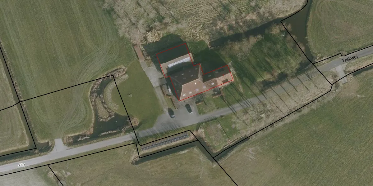 Het perceel waarop Trekwei 1 staat heeft een oppervlakte van 1,8 ha. Dit is een zeer groot perceel. De perceeloppervlakte wordt geregistreerd door het Kadaster. Gedetailleerde informatie over de maten van dit perceel kunt u vinden in het rapport Kadastrale kaart met maatvoering van Trekwei 1.