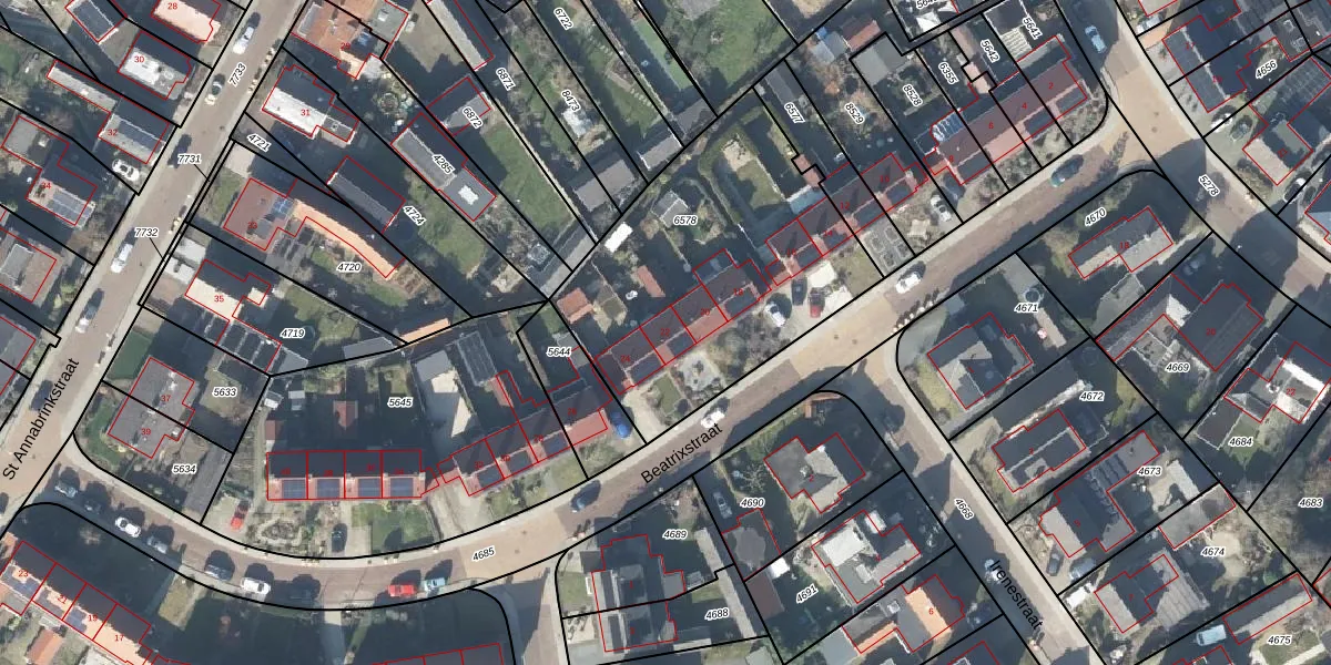 Het perceel waarop Beatrixstraat 22 staat heeft een oppervlakte van 1336 m². Dit is een zeer groot perceel. De perceeloppervlakte wordt geregistreerd door het Kadaster. Gedetailleerde informatie over de maten van dit perceel kunt u vinden in het rapport Kadastrale kaart met maatvoering van Beatrixstraat 22.