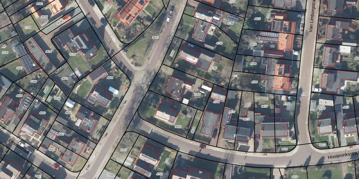 Het perceel waarop Bernhardstraat 13 staat heeft een oppervlakte van 523 m². Dit is een groot perceel. De perceeloppervlakte wordt geregistreerd door het Kadaster. Gedetailleerde informatie over de maten van dit perceel kunt u vinden in het rapport Kadastrale kaart met maatvoering van Bernhardstraat 13.