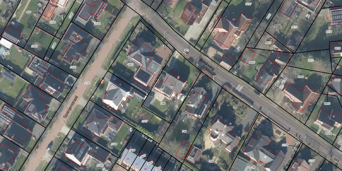 Het perceel waarop Brinkweg 16-a staat heeft een oppervlakte van 742 m². Dit is een groot perceel. De perceeloppervlakte wordt geregistreerd door het Kadaster. Gedetailleerde informatie over de maten van dit perceel kunt u vinden in het rapport Kadastrale kaart met maatvoering van Brinkweg 16-a.