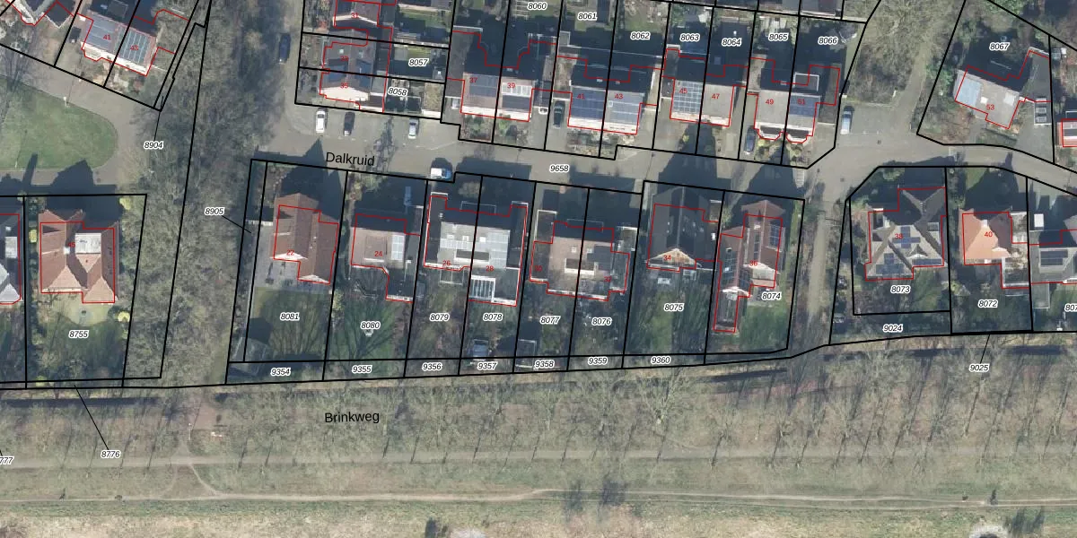 Gebruik de zoekbalk of klik op een perceel voor informatie over de adressen binnen dit perceel.