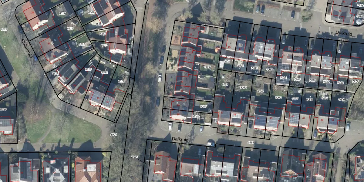 Het perceel waarop Dalkruid 31 staat heeft een oppervlakte van 1149 m². Dit is een zeer groot perceel. De perceeloppervlakte wordt geregistreerd door het Kadaster. Gedetailleerde informatie over de maten van dit perceel kunt u vinden in het rapport Kadastrale kaart met maatvoering van Dalkruid 31.