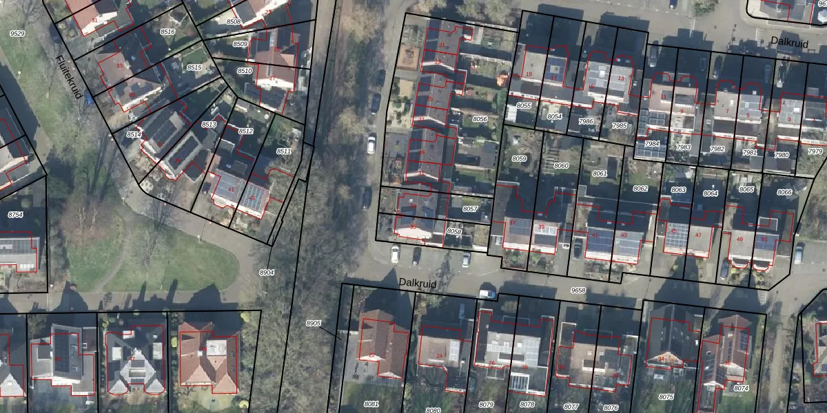Het perceel waarop Dalkruid 33 staat heeft een oppervlakte van 184 m². Dit is een middelgroot perceel. De perceeloppervlakte wordt geregistreerd door het Kadaster. Gedetailleerde informatie over de maten van dit perceel kunt u vinden in het rapport Kadastrale kaart met maatvoering van Dalkruid 33.