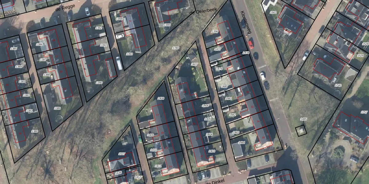 Gebruik de zoekbalk of klik op een perceel voor informatie over de adressen binnen dit perceel.
