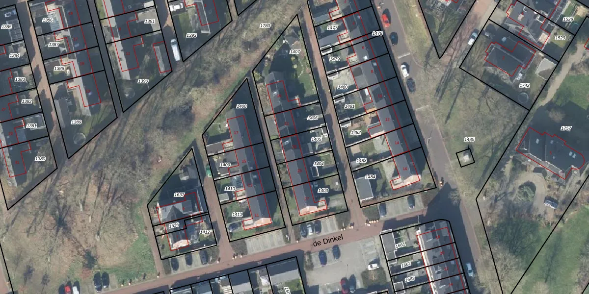 Het perceel waarop de Dinkel 23 staat heeft een oppervlakte van 165 m². Dit is een middelgroot perceel. De perceeloppervlakte wordt geregistreerd door het Kadaster. Gedetailleerde informatie over de maten van dit perceel kunt u vinden in het rapport Kadastrale kaart met maatvoering van de Dinkel 23.