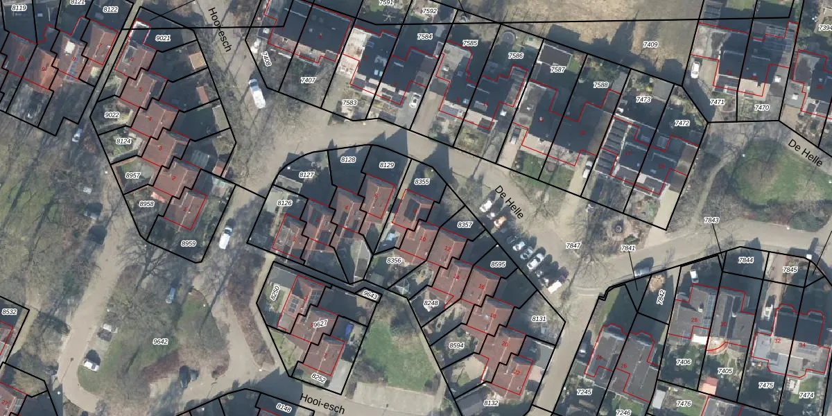 Het perceel waarop De Helle 8 staat heeft een oppervlakte van 177 m². Dit is een middelgroot perceel. De perceeloppervlakte wordt geregistreerd door het Kadaster. Gedetailleerde informatie over de maten van dit perceel kunt u vinden in het rapport Kadastrale kaart met maatvoering van De Helle 8.
