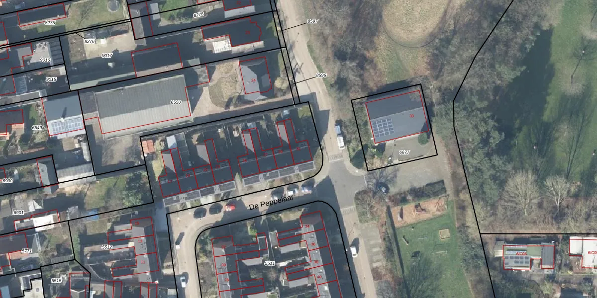 Het perceel waarop De Peppelaar 31 staat heeft een oppervlakte van 2960 m². Dit is een zeer groot perceel. De perceeloppervlakte wordt geregistreerd door het Kadaster. Gedetailleerde informatie over de maten van dit perceel kunt u vinden in het rapport Kadastrale kaart met maatvoering van De Peppelaar 31.