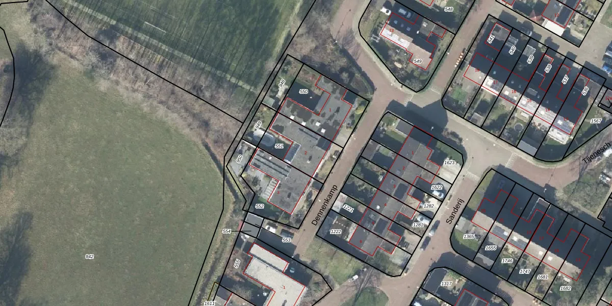 Het perceel waarop Dennenkamp 2 staat heeft een oppervlakte van 337 m². Dit is een groot perceel. De perceeloppervlakte wordt geregistreerd door het Kadaster. Gedetailleerde informatie over de maten van dit perceel kunt u vinden in het rapport Kadastrale kaart met maatvoering van Dennenkamp 2.