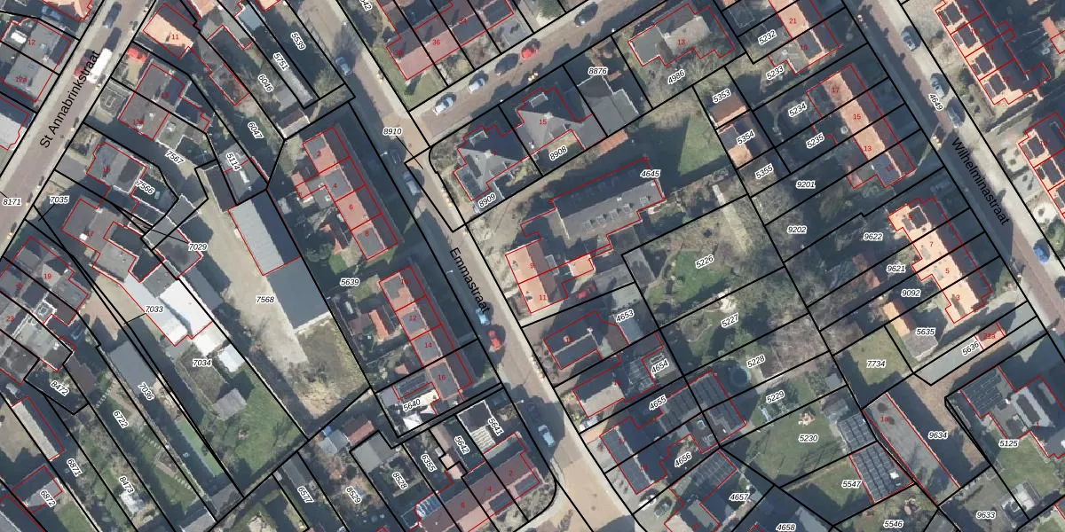 Emmastraat 9 is gelegen op kadastraal perceel DDN02A4645. Deze kadastrale aanduiding is uniek en wordt gebruikt door het Kadaster om eigendomsrechten en andere zakelijke rechten vast te leggen. Het perceel maakt onderdeel uit van de kadastrale gemeente Stad-Delden.
