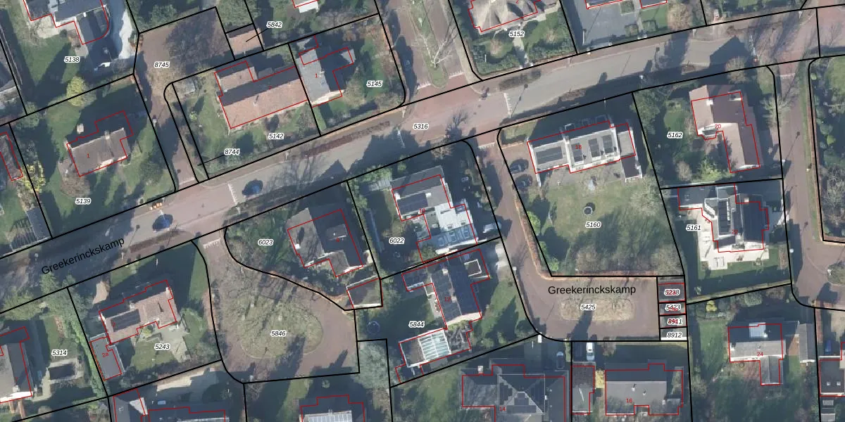 Het perceel waarop Greekerinckskamp 10 staat heeft een oppervlakte van 750 m². Dit is een groot perceel. De perceeloppervlakte wordt geregistreerd door het Kadaster. Gedetailleerde informatie over de maten van dit perceel kunt u vinden in het rapport Kadastrale kaart met maatvoering van Greekerinckskamp 10.