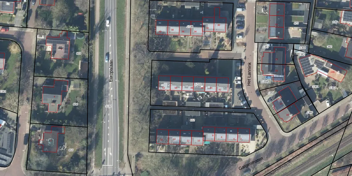 Het perceel waarop Het Lannink 50 staat heeft een oppervlakte van 1378 m². Dit is een zeer groot perceel. De perceeloppervlakte wordt geregistreerd door het Kadaster. Gedetailleerde informatie over de maten van dit perceel kunt u vinden in het rapport Kadastrale kaart met maatvoering van Het Lannink 50.