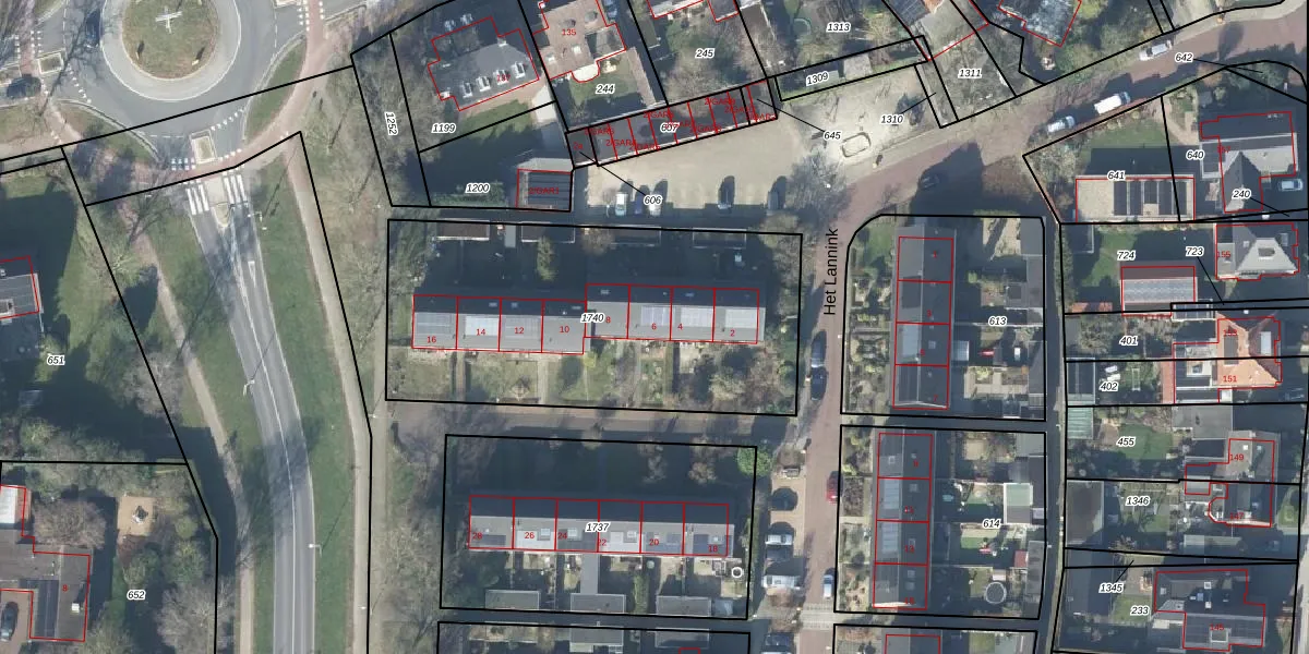 Het perceel waarop Het Lannink 6 staat heeft een oppervlakte van 1728 m². Dit is een zeer groot perceel. De perceeloppervlakte wordt geregistreerd door het Kadaster. Gedetailleerde informatie over de maten van dit perceel kunt u vinden in het rapport Kadastrale kaart met maatvoering van Het Lannink 6.