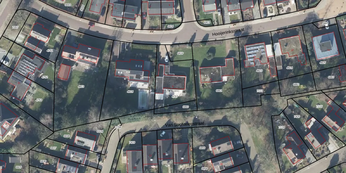Het perceel waarop Hooijerinksstraat 6 staat heeft een oppervlakte van 635 m². Dit is een groot perceel. De perceeloppervlakte wordt geregistreerd door het Kadaster. Gedetailleerde informatie over de maten van dit perceel kunt u vinden in het rapport Kadastrale kaart met maatvoering van Hooijerinksstraat 6.