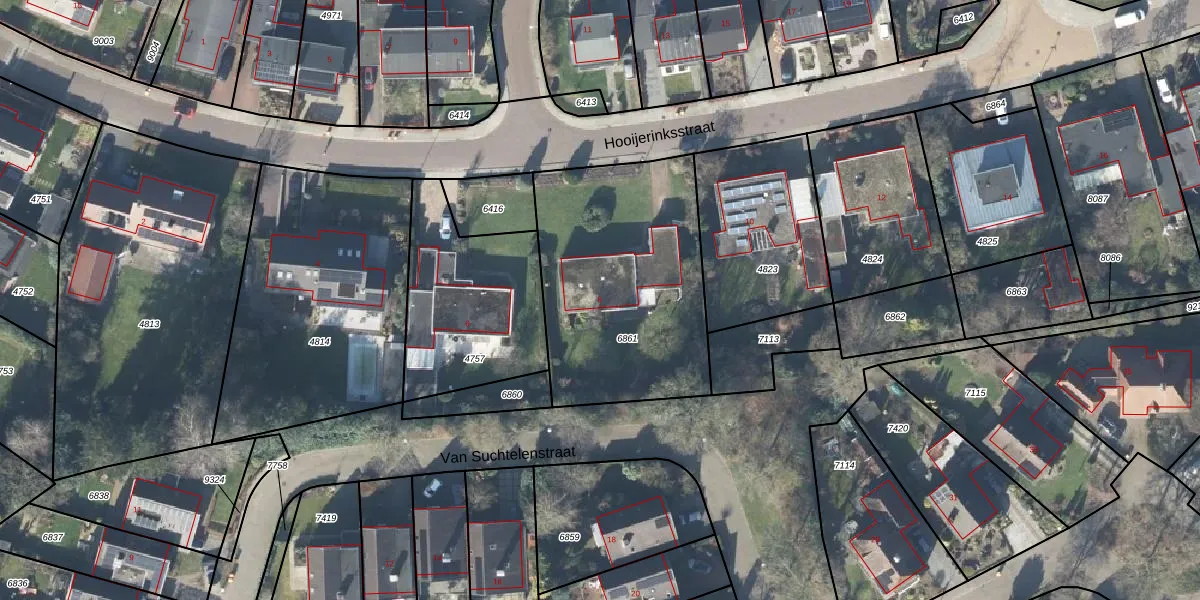 Hooijerinksstraat 8 is gelegen op kadastraal perceel DDN02A6861. Deze kadastrale aanduiding is uniek en wordt gebruikt door het Kadaster om eigendomsrechten en andere zakelijke rechten vast te leggen. Het perceel maakt onderdeel uit van de kadastrale gemeente Stad-Delden.