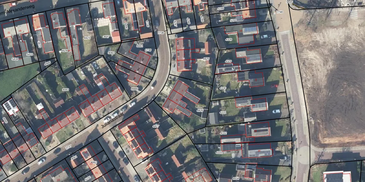 Julianastraat 7 is gelegen op kadastraal perceel DDN02A4426. Deze kadastrale aanduiding is uniek en wordt gebruikt door het Kadaster om eigendomsrechten en andere zakelijke rechten vast te leggen. Het perceel maakt onderdeel uit van de kadastrale gemeente Stad-Delden.