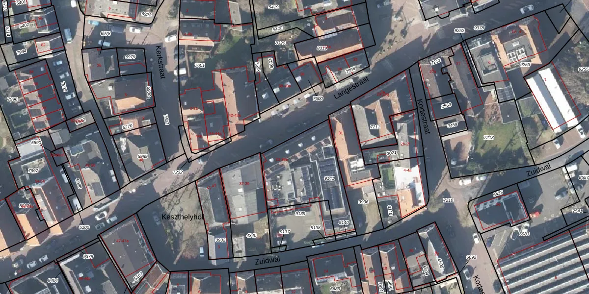 Langestraat 33-c is gelegen op kadastraal perceel DDN02A9141. Deze kadastrale aanduiding is uniek en wordt gebruikt door het Kadaster om eigendomsrechten en andere zakelijke rechten vast te leggen. Het perceel maakt onderdeel uit van de kadastrale gemeente Stad-Delden.